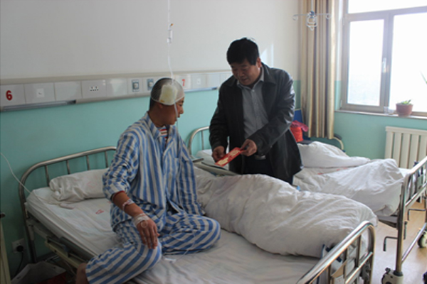 在新春佳节来临前的2013年2月2日上午,,,由集团公司工会主席叶长林带队,,,带着集团公司向导的体贴,,,对集团公司的难题职工举行了慰问,,,为他们每人送去1000元的慰问金以及新春的祝福。。。。