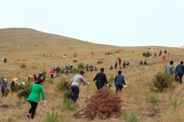 植树现场 ,,热闹特殊。。。各人分工协作 ,,扛苗散苗 ,,挥锹铲土 ,,扶苗扎实 ,,挖坑、栽树、盖土等各环节都全心看待 ,,栽得认真 ,,干得认真 ,,整个植树运动现场一片热火朝天的劳动情形。。。经由一上午的劳动 ,,近2万株樟子松树苗在屈吴山“捌矫皲户” ,,屹立在四月的温暖春风里 ,,泛起出一派生气勃勃的情形。。。同时 ,,在区林业局、屈吴山林场全体干部职工的全心组织下 ,,各人还举行了署名仪式。。。