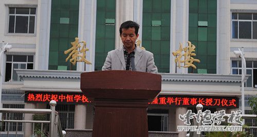 2014年4月18日下昼5点30分,,中恒学校在国旗台前盛大举行学生国旗班建设暨房董事长授升旗指挥刀仪式。。。