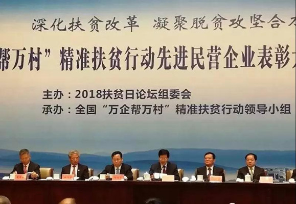 天下“万企帮万村"”精准扶贫行动先进民营企业表扬大会暨扶贫日论坛于2018年10月16日在北京聚会中心举行 , ,,天下政协副主席、天下工商联主席高云龙,中央统战部副部长、天下工商联党组书记、常务副主席徐乐江 , ,,国务院扶贫办副主任夏重生等向导出席聚会。。天下工商联副主席、中国色泽会副会长谢经荣主持聚会。。