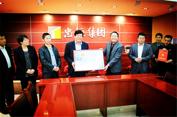 2013年11月7日下昼,,市工商局副局长徐兆鹏,,区工商分局副局长吴振涛、副局长汪文斌在集团公司七楼聚会室揭晓了天下工商总局授予集团公司的“守条约重信用”声誉证书和奖牌,,集团公司党总支书记叶长林接受了颁奖。。。。