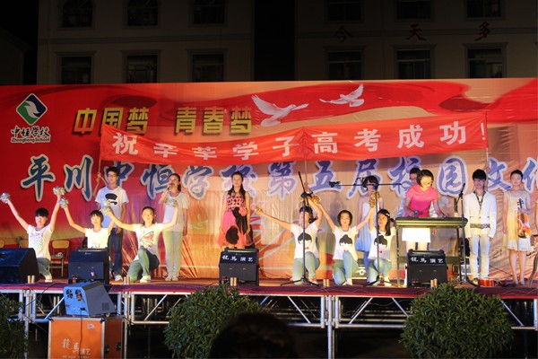 2013年5月30日晚上8点, ,,,中恒学校校园文化艺术节开幕, ,,,xh6388新濠天地董事长、中恒学校董事长房忠、集团公司副总司理许海燕、叶长林、赵有涛、集团公司财务总监房文昌、平川二建十八项目部司理黄天德、商贸公司总司理黄雪峰、花苑物业公司总司理唐君尧、担保中心司理秦宏林及集团公司各部室认真人加入了艺术节运动并寓目了文艺演出 。。