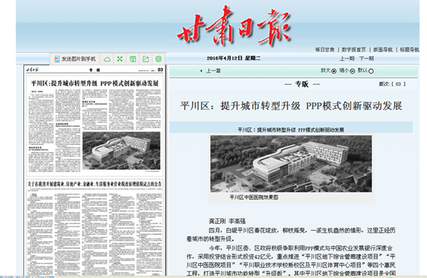 ¡¾¸ÊËàÈÕ±¨¡¿Æ½´¨Çø£ºÌáÉý¶¼»áתÐÍÉý¼¶ PPPģʽÁ¢ÒìÇý¶¯Éú³¤